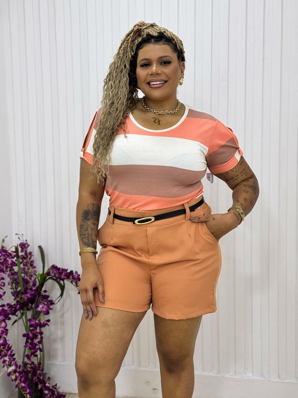 Blusa Viscolycra Plus Estampado Manga Vazada
