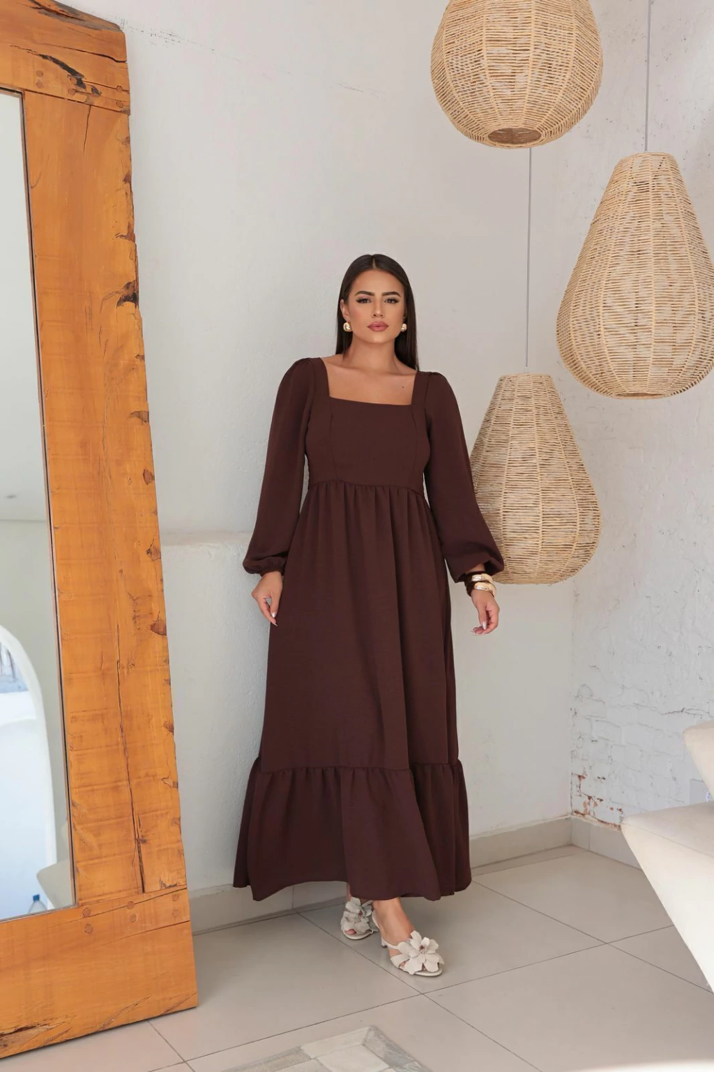 Vestido Longo Duna Manga Longa Csts Lastex