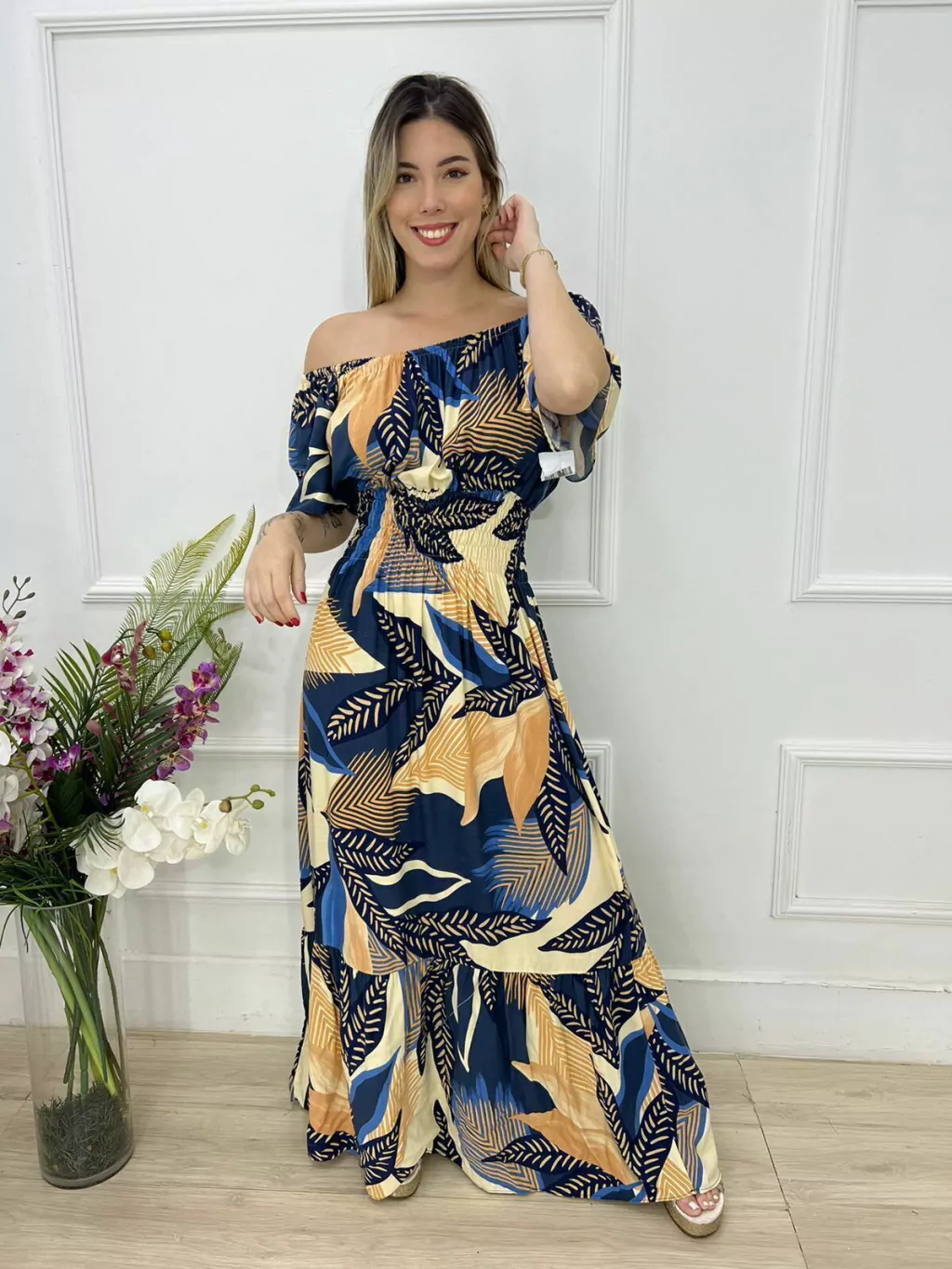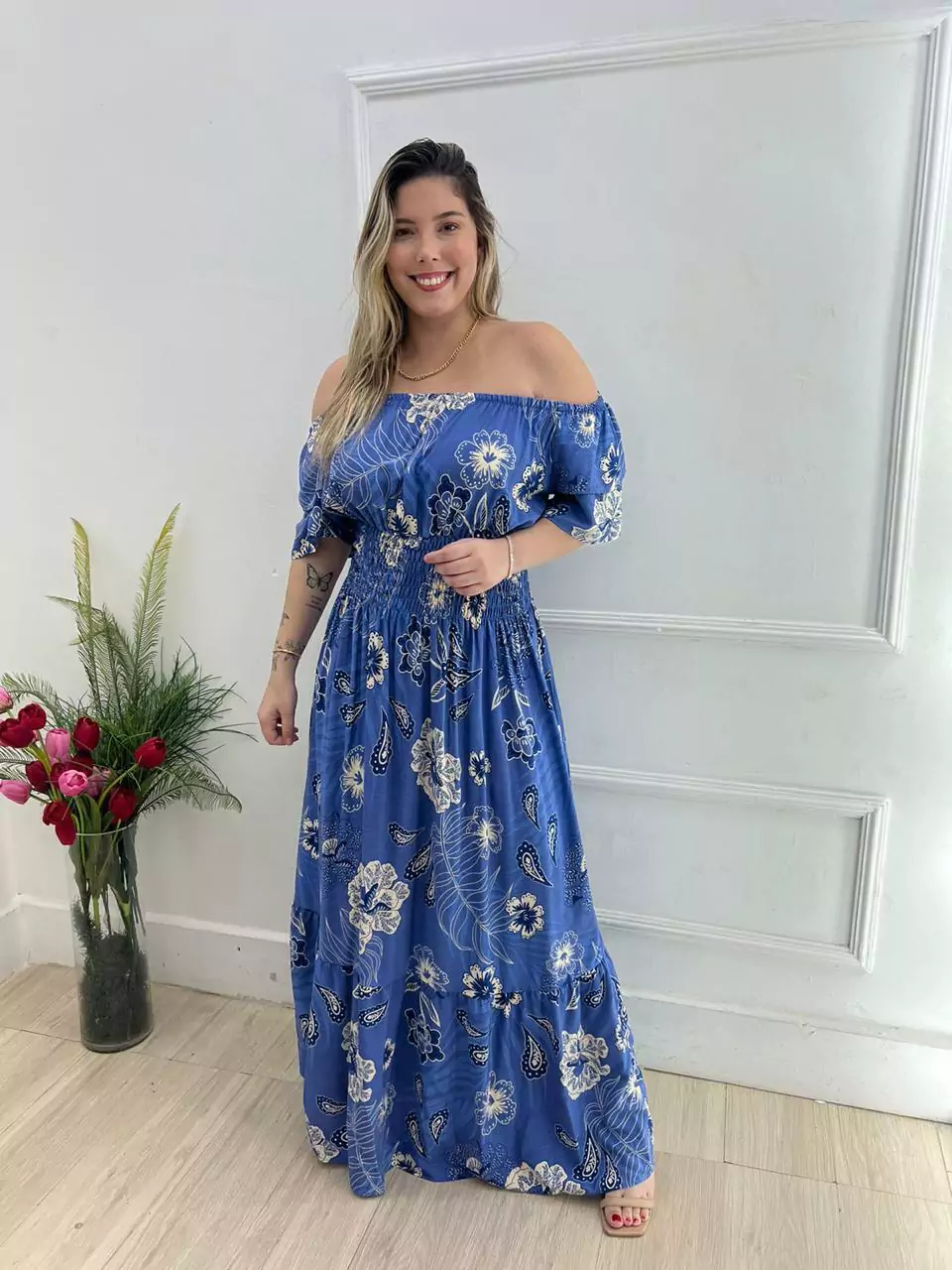 Vestido Longo Plus Manga Dois Babados Viscolinho