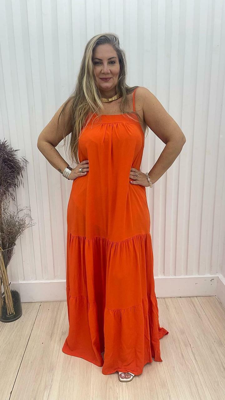 Vestido Longo Plus Viscolinho Alça Csts Lastex Largo