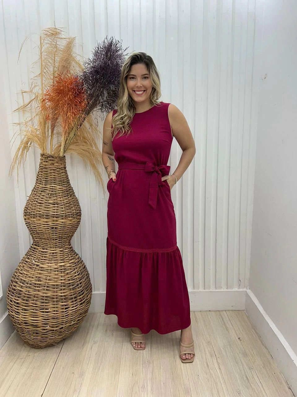 Vestido Longo Viscolinho C/ Cinto