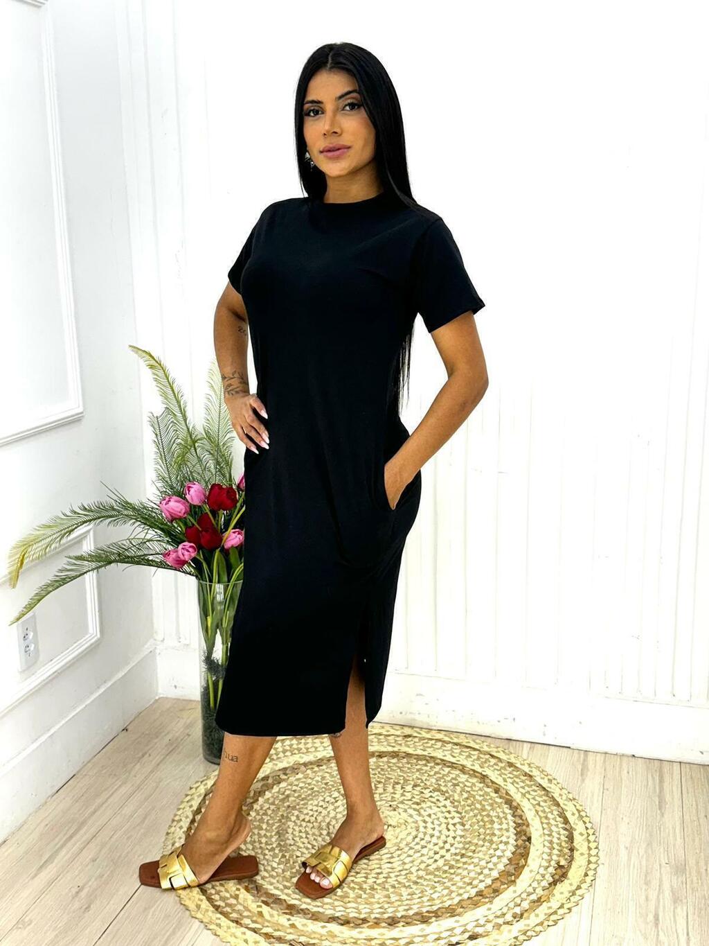 Vestido Midi Viscolycra/Moletinho Manga Lisa