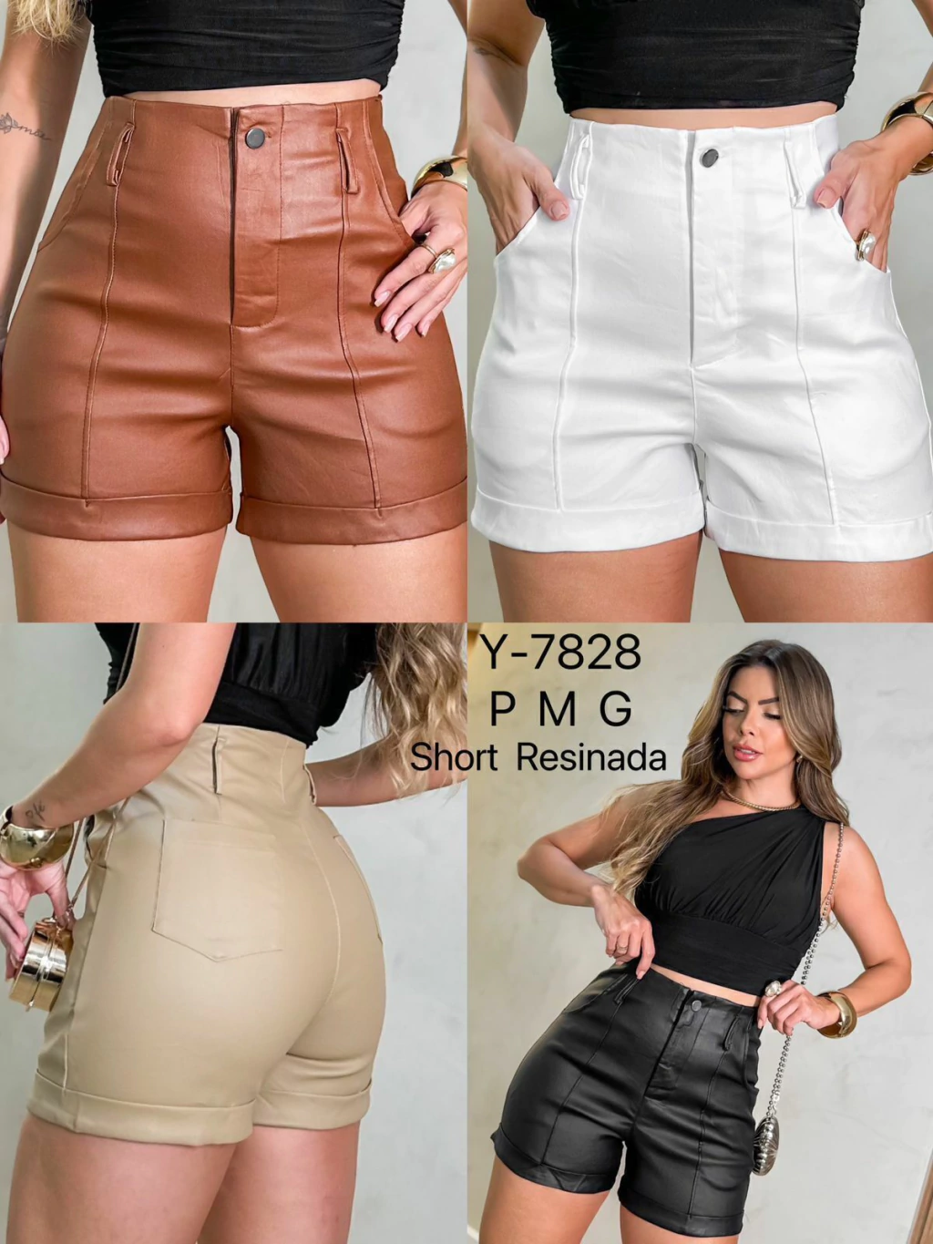 Y7828 Short Couro Fake Barra Dobrada NSY
